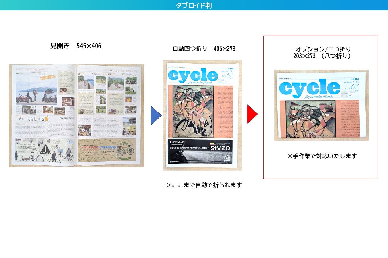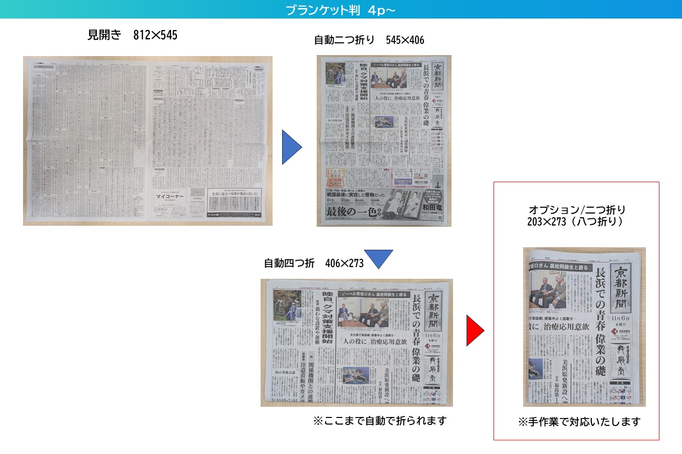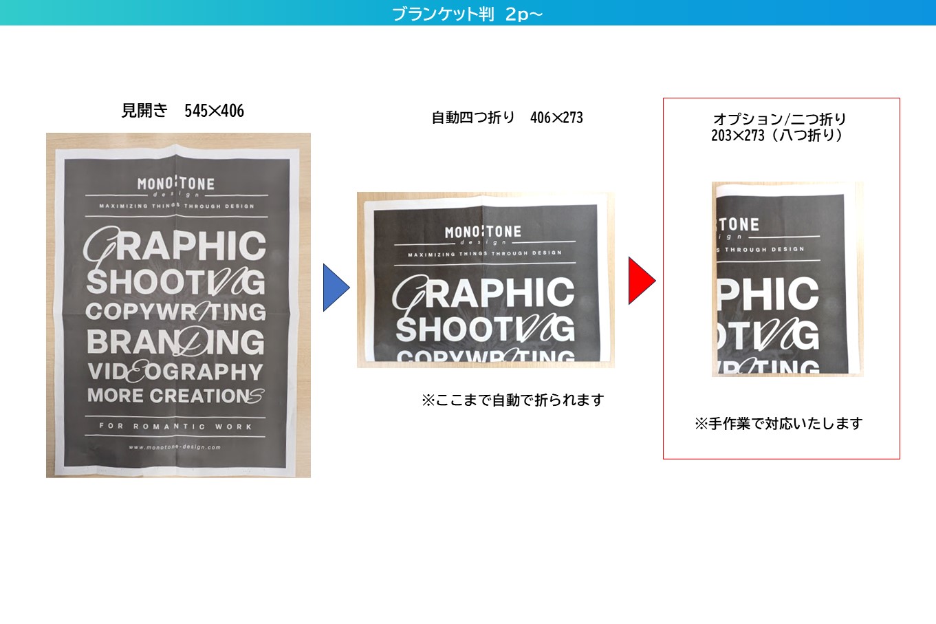 ※ブランケット2pとタブロイド判は1回目の折りで「四つ折り」となります。